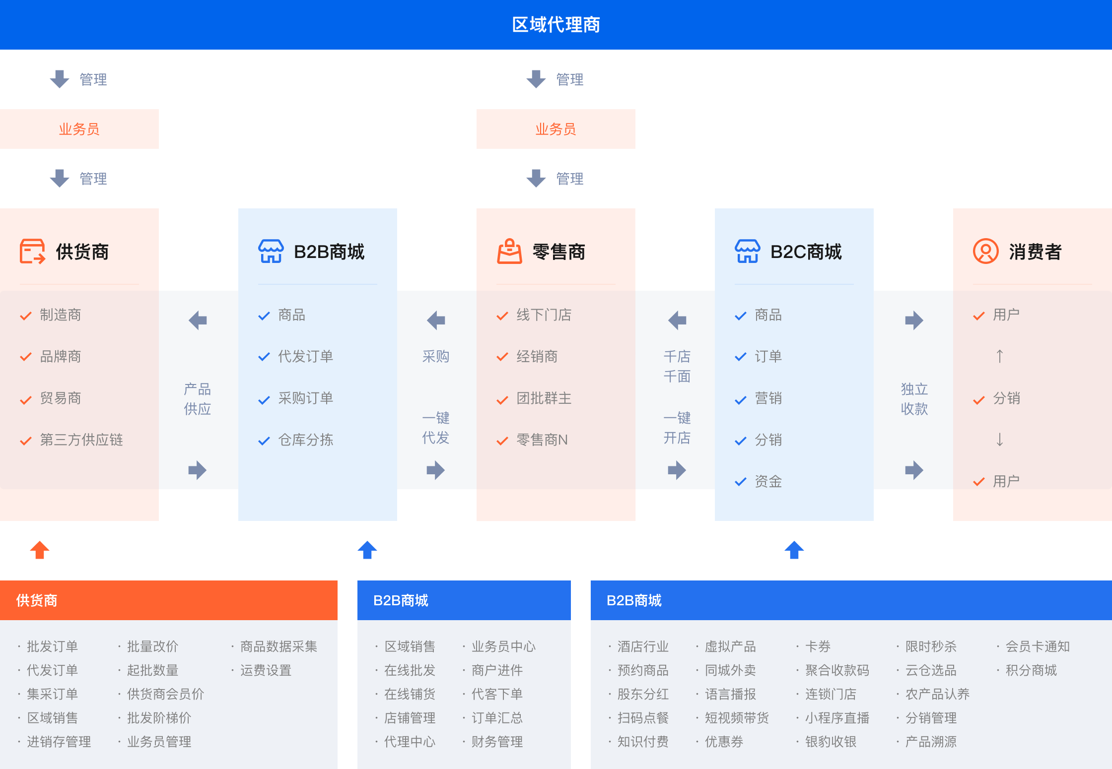 线下消费订单同步扣除平台库存,实现库存统一,线下消费订 单可以线上分销返佣,线上充值余额,线下购物余额共享
